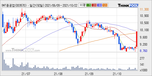 SNT중공업의 2020년 매출액은 전년대비 -19.6% 줄어든 3018억원이고, 영업이익 역시 전년대비 -29.2% 줄어든 136억원을 기록했다. 이 회사의 매출액 증감률과 영업이익 증감률은 각각 코스피 하위 15%, 하위 32%에 해당된다.