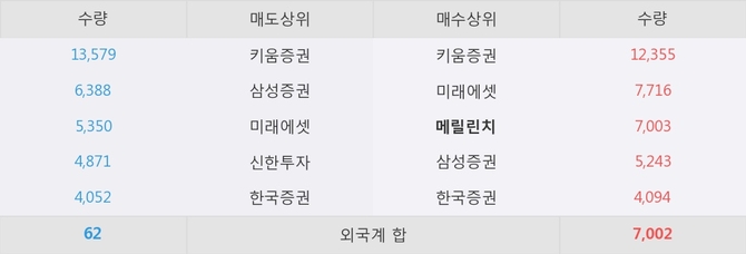 거래원 동향은 메릴린치, 미래에셋, 삼성증권 등이 매수 상위 목록에 나타나고 있다.