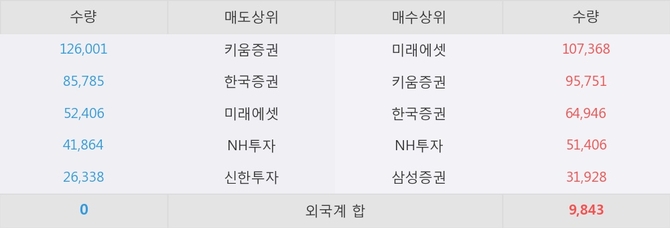 거래원 동향은 미래에셋, NH투자, 삼성증권 등이 매수 상위 목록에 나타나고 있다.
