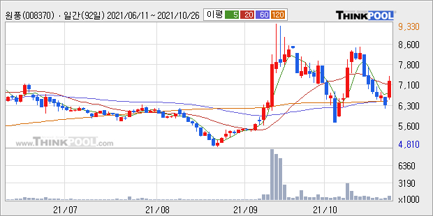 원풍의 2020년 매출액은 전년대비 1.0% 늘어난 736억원이고, 영업이익 또한 전년대비 87.9% 늘어난 51억원을 기록했다. 이 회사의 매출액 증감률과 영업이익 증감률은 각각 코스닥 상위 48%, 상위 20%에 해당된다.