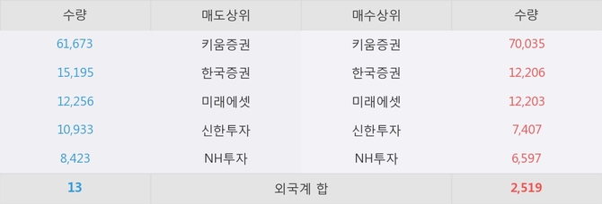 거래원 동향은 미래에셋, NH투자 등이 매수 상위 목록에 나타나고 있다.