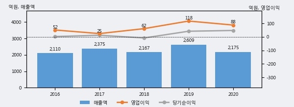 혜인의 2020년 매출액은 전년대비 -16.6% 줄어든 2175억원이고, 영업이익 역시 전년대비 -25.3% 줄어든 88억원을 기록했다. 이 회사의 매출액 증감률과 영업이익 증감률은 각각 코스피 하위 19%, 하위 34%에 해당된다.