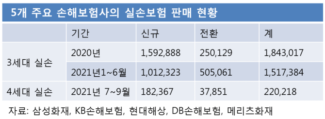 3분기에 월평균 실손보험 가입자가 상반기의 3분의 1토막이 난 것은 의료 이용량에 따라 보험료가 할증되고 본인 부담도 늘어나게끔 상품 구조가 개편된 '4세대' 실손보험으로 7월에 상품이 교체됐기 때문이다.
