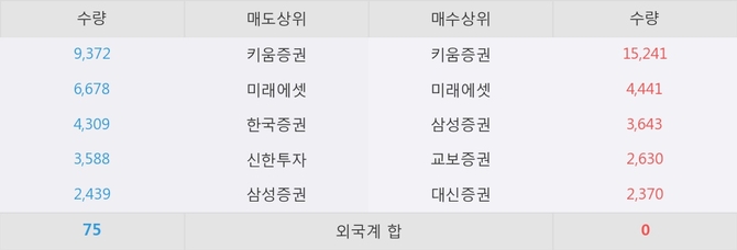 거래원 동향은 미래에셋, 삼성증권 등이 매수 상위 목록에 나타나고 있다.