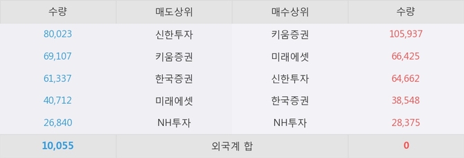 거래원 동향은 미래에셋, NH투자 등이 매도 상위 목록에 나타나고 있다.
