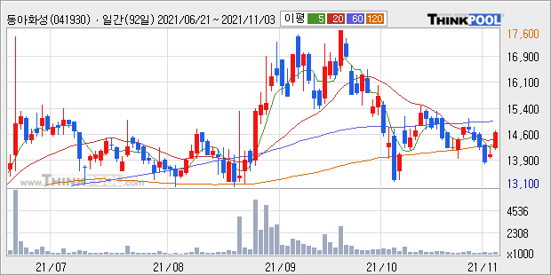 동아화성의 2020년 매출액은 2618억으로 전년대비 -9.3% 하락했고, 영업이익은 133억으로 전년대비 23.6% 상승했다. 이 회사의 매출액 증감률과 영업이익 증감률은 각각 코스닥 하위 33%, 상위 38%에 해당된다.