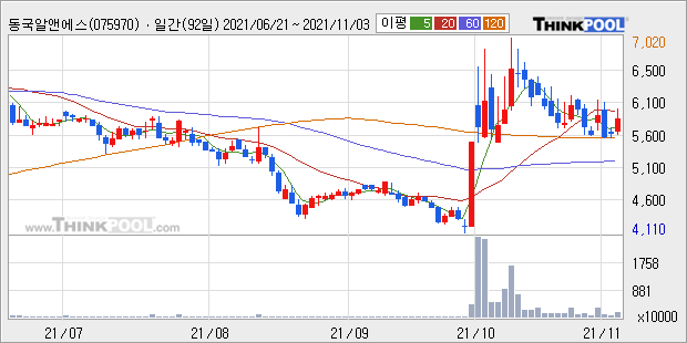 동국알앤에스의 2020년 매출액은 전년대비 -8.3% 줄어든 934억원이고, 영업이익은 전년대비 16.0% 늘어난 42억원을 기록했다. 이 회사의 매출액 증감률과 영업이익 증감률은 각각 코스닥 하위 34%, 상위 42%에 해당된다.
