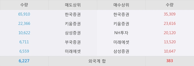 거래원 동향은 삼성증권, 미래에셋 등이 매도 상위 목록에 나타나고 있다.