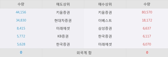 거래원 동향은 삼성증권, 미래에셋 등이 매수 상위 목록에 나타나고 있다.