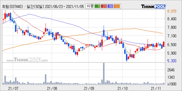 추세선으로 보면 단기간에 골든크로스를 만들고 주가가 60일선까지 뚫고 가는 모습이다. 최근 이 종목의 차트에서 주가 5MA 상향돌파 등의 특이사항이 발생했다.