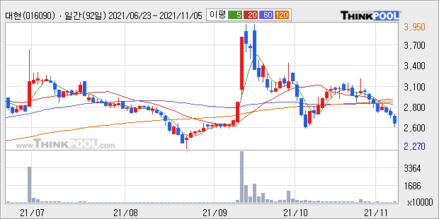 대현은 2020년 매출액 2532억원과 영업이익 71억원을 기록했다. 전년대비 매출은 -15.5%, 영업이익은 -64.8% 각각 하락했다. 이 회사의 매출액 증감률과 영업이익 증감률은 각각 코스피 하위 20%, 하위 21%에 해당된다.
