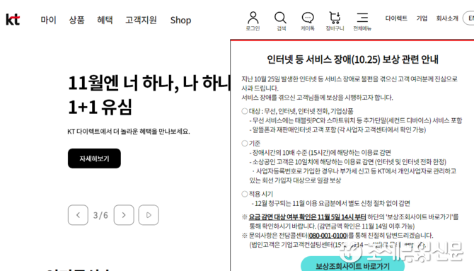 (조세금융신문=구재회 기자) KT는 지난달 25일 전국 네트워크 장애 발생에 따른 고객보상을 위해 전담 지원센터를 열었다.