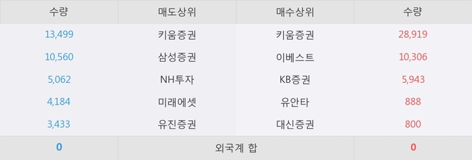 거래원 동향은 삼성증권, NH투자, 미래에셋 등이 매도 상위 목록에 나타나고 있다.