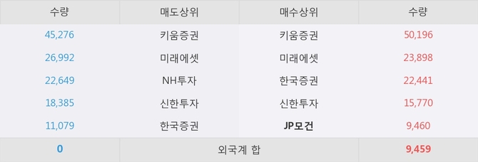 거래원 동향은 JP모건, 미래에셋이 매수 상위 목록에 나타나고 있다.