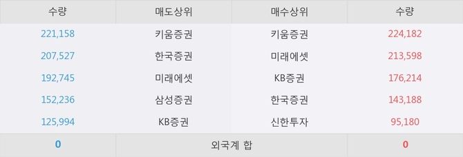 이 시각 주요 거래원은 미래에셋, 키움증권, KB증권 등이 매수 상위 창구에 자리하고 있다.