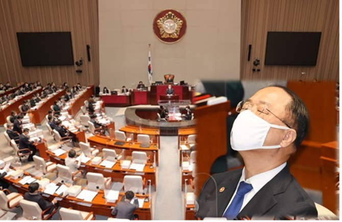 그러나 여당이 추진하는 초과세수 납부 유예는 법상 요건을 맞출 수 없다는 게 기재부 내부의 의견이다. 홍 부총리 역시 위법 소지에 대한 우려를 언급한 것으로 풀이된다.