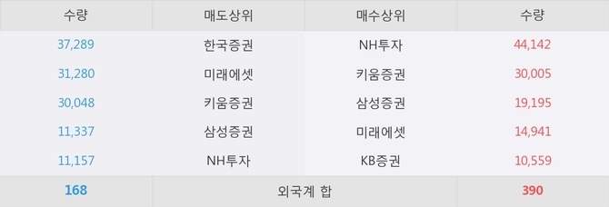 거래원 동향은 NH투자, 삼성증권, 미래에셋 등이 매수 상위 목록에 나타나고 있다.