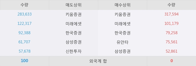 거래원 동향은 미래에셋, 삼성증권 등이 매수 상위 목록에 나타나고 있다.