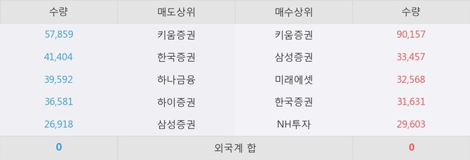 거래원 동향은 삼성증권, 미래에셋, NH투자 등이 매수 상위 목록에 나타나고 있다.