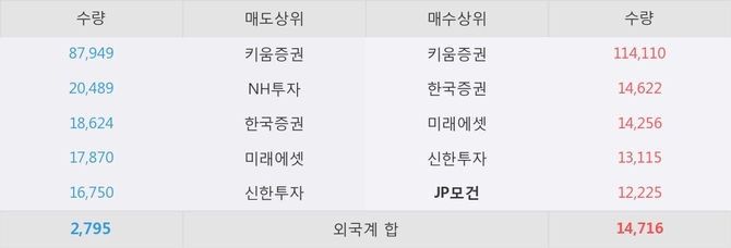 거래원 동향은 JP모건, 미래에셋이 매수 상위 목록에 나타나고 있다.