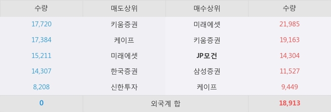 거래원 동향은 JP모건, 미래에셋, 삼성증권 등이 매수 상위 목록에 나타나고 있다.