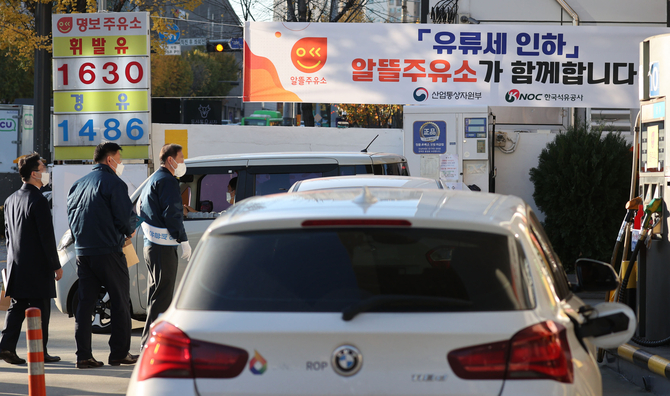 다만 정유사들이 직접 운영하는 직영주유소와 한국석유공사가 운영하는 알뜰주유소는 유류세 인하분을 전날부터 즉시 반영했고, 그 효과로 휘발유 가격이 하루 만에 40원 이상 떨어질 수 있었다.