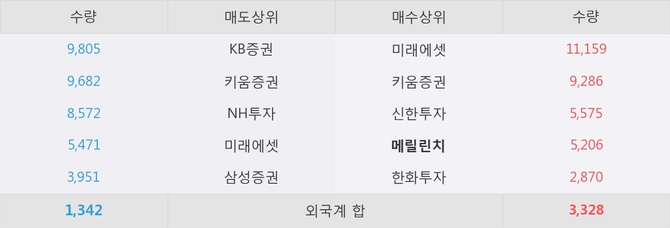 거래원 동향은 메릴린치, 미래에셋이 매수 상위 목록에 나타나고 있다.