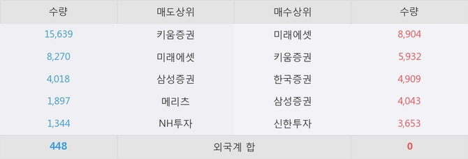 거래원 동향은 미래에셋, 삼성증권, 메리츠 등이 매도 상위 목록에 나타나고 있다.