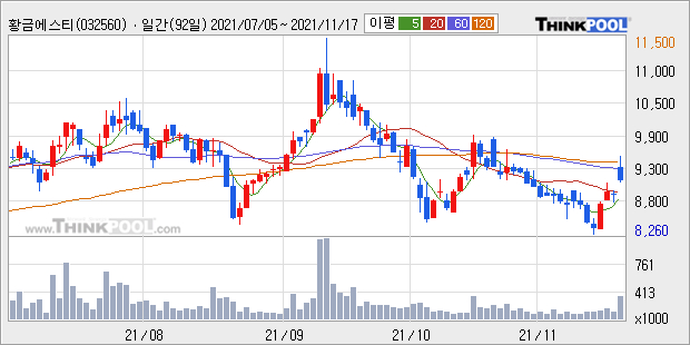 황금에스티의 2020년 매출액은 전년대비 6.0% 늘어난 2582억원이고, 영업이익 또한 전년대비 26.5% 늘어난 238억원을 기록했다. 이 회사의 매출액 증감률과 영업이익 증감률은 각각 코스피 상위 24%, 상위 35%에 해당된다.