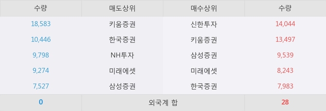 거래원 동향은 삼성증권, 미래에셋 등이 매수 상위 목록에 나타나고 있다.