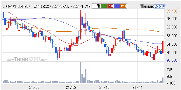 세방전지의 2020년 매출액은 1조 2528억으로 전년대비 10.0% 상승했고, 영업이익은 864억으로 전년대비 -18.3% 하락했다. 이 회사의 매출액 증감률과 영업이익 증감률은 각각 코스피 상위 18%, 하위 36%에 해당된다.