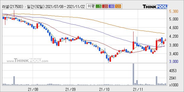 러셀은 2020년 매출액 291억원과 영업이익 32억원을 기록했다. 전년대비 매출은 -29.0%, 영업이익은 -34.6% 각각 하락했다. 이 회사의 매출액 증감률과 영업이익 증감률은 각각 코스닥 하위 1%, 하위 1%에 해당된다.