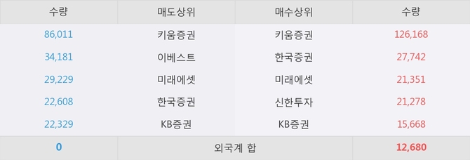 이 시각 주요 거래원은 미래에셋, 키움증권, 한국증권 등이 매수 상위 창구에 자리하고 있다.
