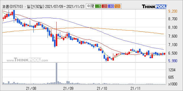 코콤의 2020년 매출액은 전년대비 -11.2% 줄어든 1189억원이고, 영업이익 역시 전년대비 -18.5% 줄어든 109억원을 기록했다. 이 회사의 매출액 증감률과 영업이익 증감률은 각각 코스닥 하위 30%, 하위 41%에 해당된다.