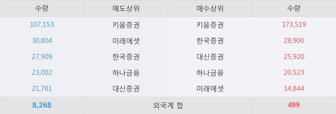 거래원 동향은 하나금융, 미래에셋 등이 매수 상위 목록에 나타나고 있다.