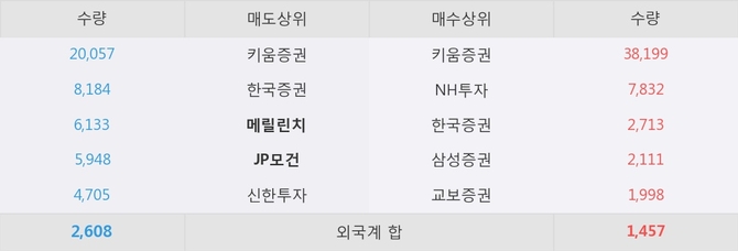 거래원 동향은 NH투자, 삼성증권 등이 매수 상위 목록에 나타나고 있다. 한편, 매도 창구 상위에는 메릴린치와 JP모건이 눈에 띄고 있다.