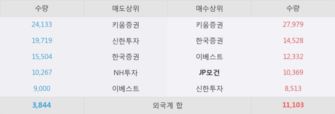 JP모건이 매수상위 창구 4위를 기록중이고, 그 외에 키움증권, 한국증권 등이 매수 창구 상위에 위치하고 있다.