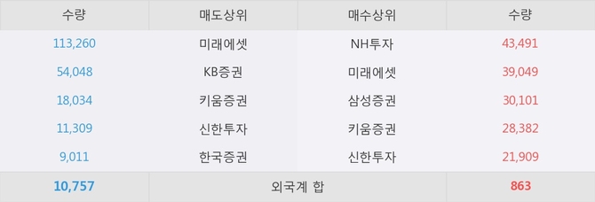 이 시각 주요 거래원은 미래에셋, KB증권, 키움증권 등이 매도 상위 창구에 자리하고 있다.