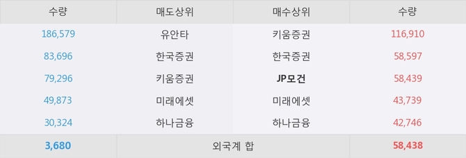 거래원 동향은 미래에셋, 하나금융 등이 매도 상위 목록에 나타나고 있다. 한편, 매수 창구 상위에는 JP모건이 눈에 띄고 있다.
