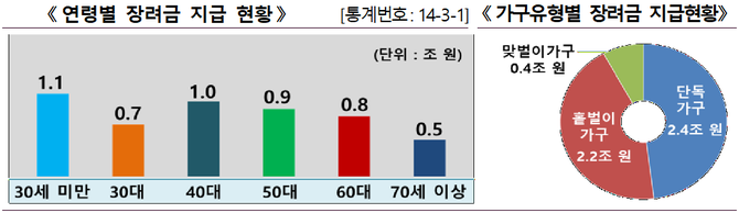 연령대별 지급가구는 30세 미만(1.1조원), 40대(1조원), 50대(0.9조원) 순으로 나타났다.