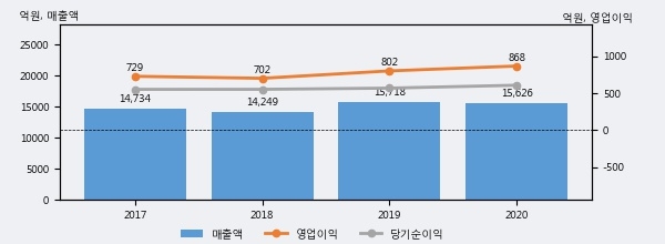 현대오토에버의 2020년 매출액은 전년대비 -0.6% 줄어든 1조 5626억원이고, 영업이익은 전년대비 8.2% 늘어난 868억원을 기록했다. 이 회사의 매출액 증감률과 영업이익 증감률은 각각 코스피 상위 43%, 상위 47%에 해당된다.