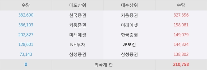 거래원 동향은 미래에셋, NH투자, 삼성증권 등이 매도 상위 목록에 나타나고 있다. 한편, 매수 창구 상위에는 JP모건이 눈에 띄고 있다.