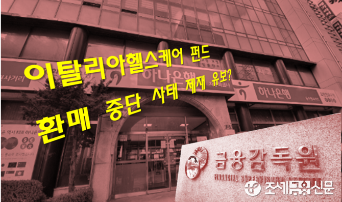 2일 금융당국에 따르면 금융감독원은 이날 제재심의위원회를 열어 이탈리아헬스케어 펀드 환매 중단 사태와 관련해 하나은행에 대한 종합검사 결과 조치안을 상정·심의했으나 결론에 이르지 못했다.