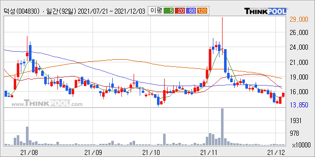 덕성의 2020년 매출액은 1177억으로 전년대비 35.7% 상승했고, 영업이익 또한 56억으로 전년대비 1,083.0% 상승했다. 이 회사의 매출액 증감률과 영업이익 증감률은 각각 코스피 상위 4%, 상위 1%에 해당된다.