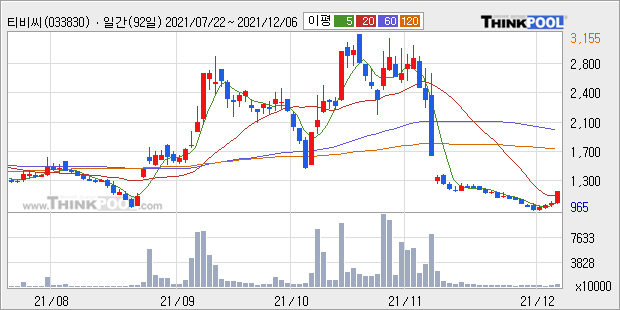 티비씨는 2020년 매출액 353억원과 영업이익 29억원을 기록했다. 전년대비 매출은 -28.4%, 영업이익은 -44.4% 각각 하락했다. 이 회사의 매출액 증감률과 영업이익 증감률은 각각 코스닥 하위 13%, 하위 31%에 해당된다.