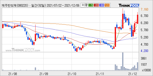 제주반도체의 2020년 매출액은 1815억으로 전년대비 12.0% 상승했고, 영업이익은 53억으로 전년대비 -13.8% 하락했다. 이 회사의 매출액 증감률과 영업이익 증감률은 각각 코스닥 상위 32%, 하위 43%에 해당된다.