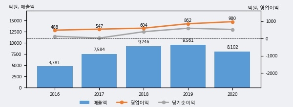 KG이니시스의 2020년 매출액은 전년대비 -15.3% 줄어든 8102억원이고, 영업이익은 전년대비 13.8% 늘어난 980억원을 기록했다. 이 회사의 매출액 증감률과 영업이익 증감률은 각각 코스닥 하위 24%, 상위 43%에 해당된다.