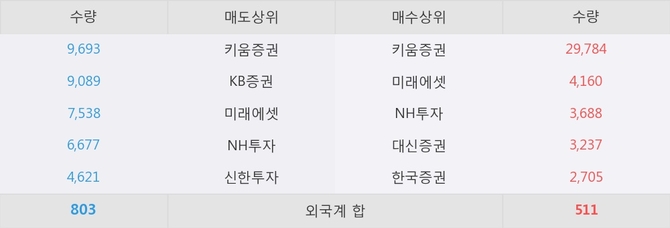 거래원 동향은 미래에셋, NH투자 등이 매수 상위 목록에 나타나고 있다.