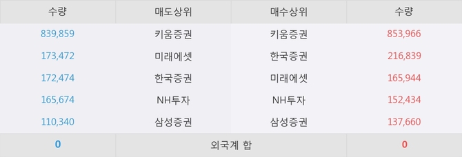 거래원 동향은 미래에셋, NH투자, 삼성증권 등이 매수 상위 목록에 나타나고 있다.
