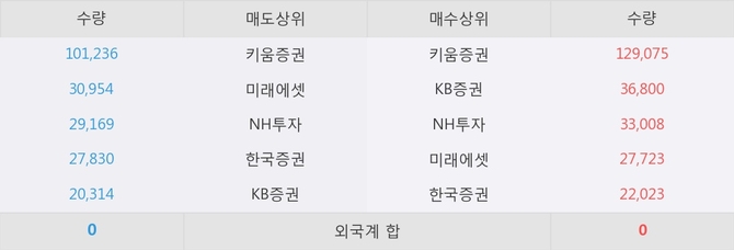 아직까지 외국계 증권사 창구를 통한 매매는 발생하지 않고 있다. 그리고 이 시간 KB증권이 매수창구상위에 올라있는 종목은 이 종목 이외에도 유진스팩7호, 모베이스 등이 있다.